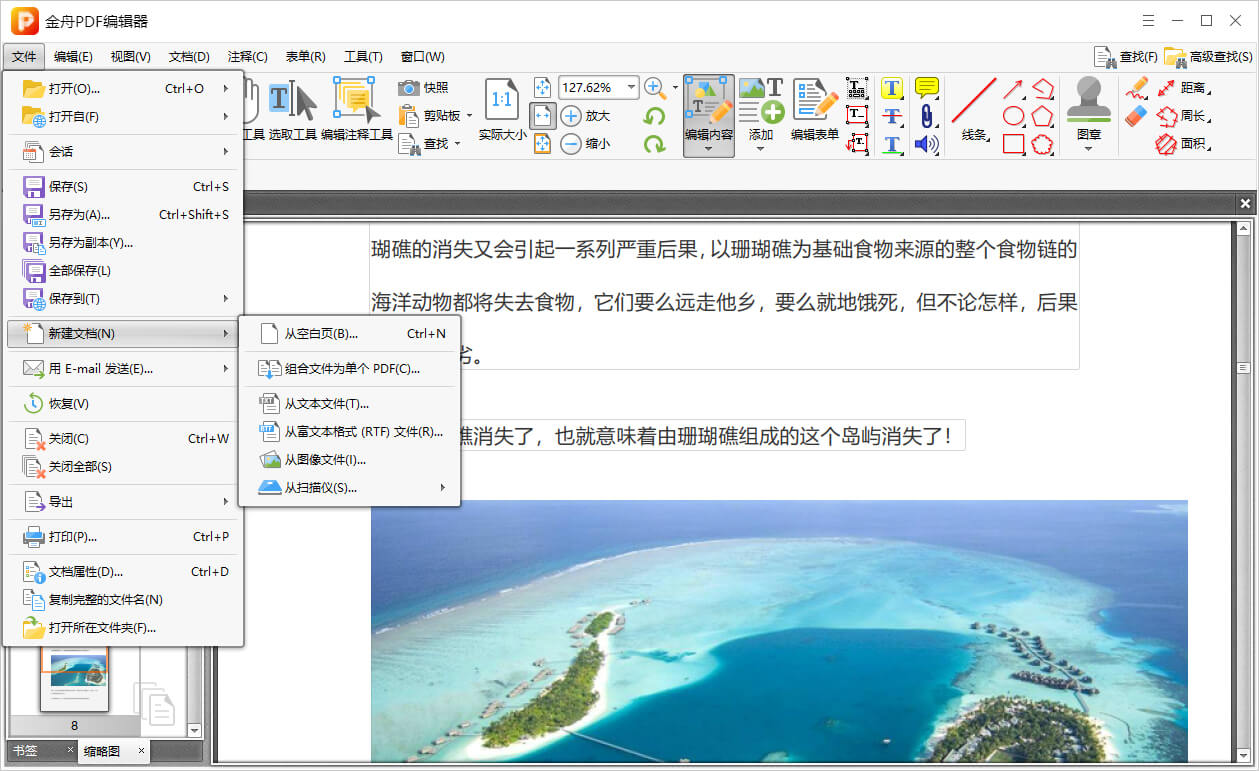 可以新建PDF空白页,或者导入office文档、文本和图像创建PDF文档。