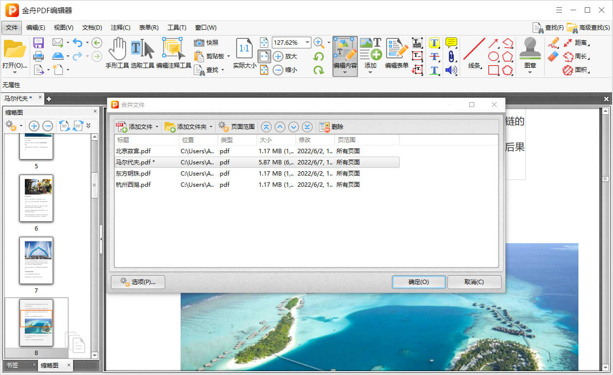 支持一键合并和拆分PDF文档,可以单独提取源文档中其中几页进行合并。