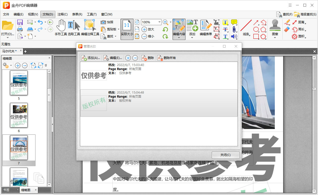 支持一键删除PDF水印,轻松快速;PDF文档可以添加文字或图片水印,自由调整水印的颜色、大小、位置和透明度。