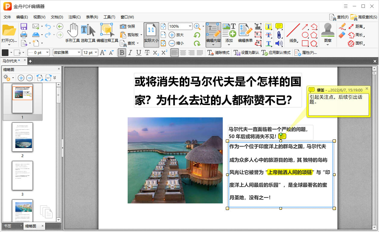 添加便笺注释和文本框,用高亮、划掉、下划线来标记文档以便审阅。