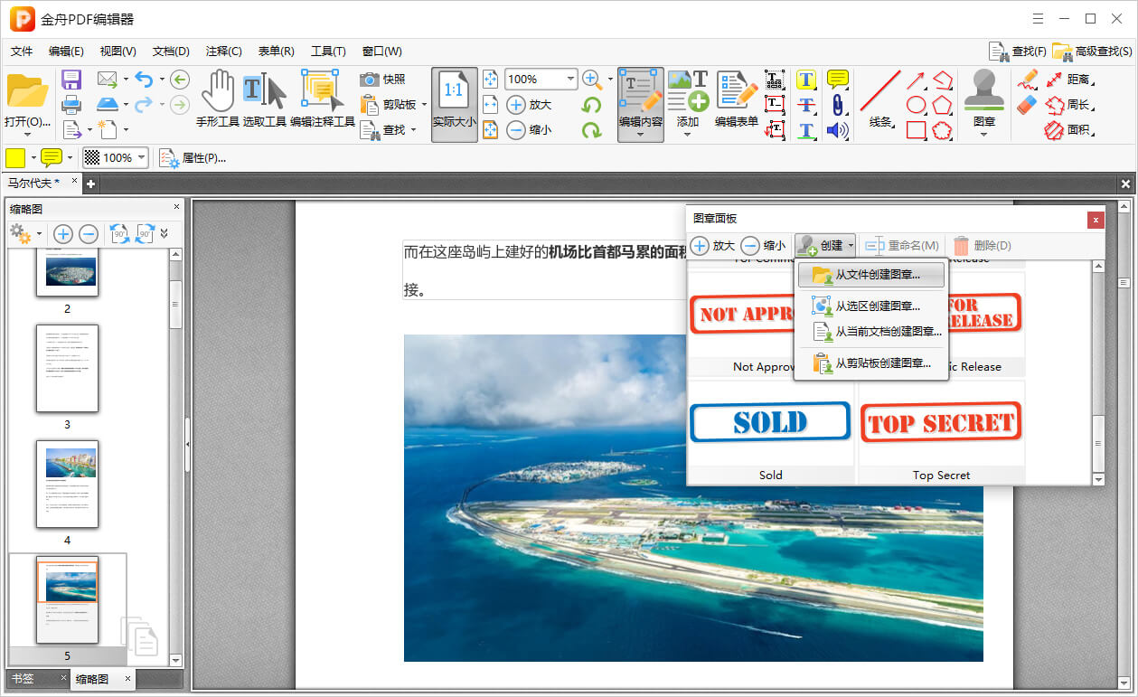 提供多种图章选择,也可以自定义新的图章来批注文档。